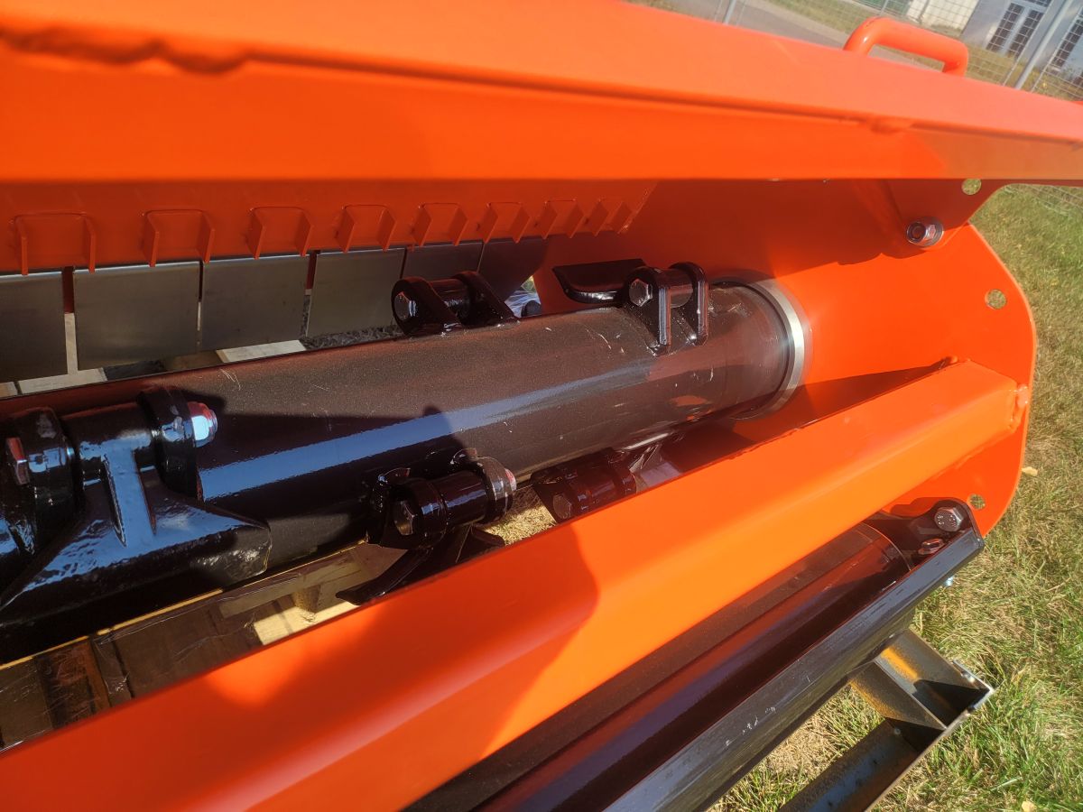 Pro zvýšení bezpečnosti a pro snažší ovládání mulčovače je hydraulická pístnice ovládajíci vertikální naklápění mulčovací hlavy opatřena hydraulickým zámkem.
