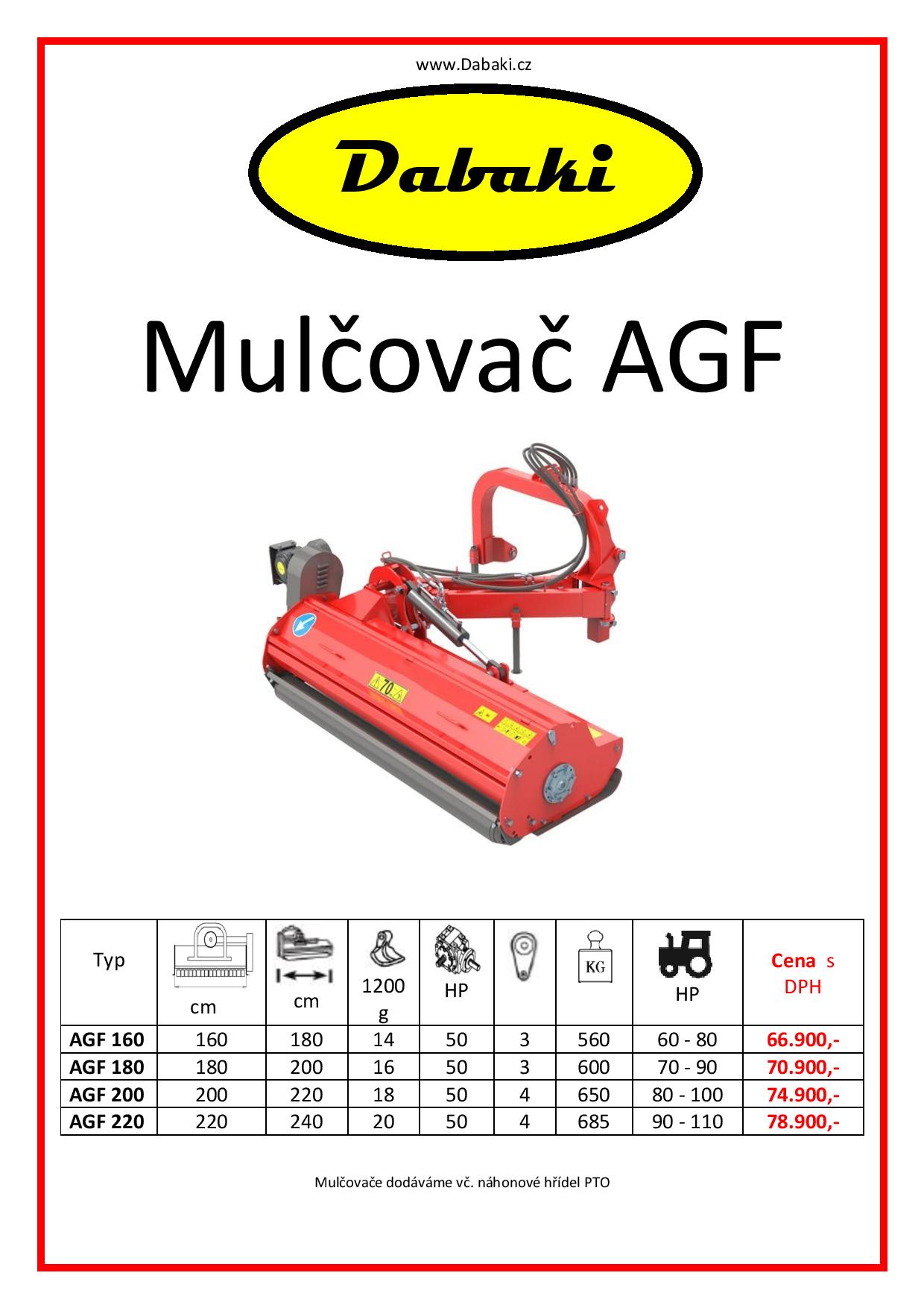 Příkopové mulčovače AGF jsou těžší a robustnější variantů příkopových mulčovačů BEM-S. V menších pracovních záběrech – 140 – 160 cm jsou vhodné i pro např. starší traktory Zetor. Konstrukce výkyvného ramene umožňuje agragaci s traktory o celkové šířce do 210 cm.